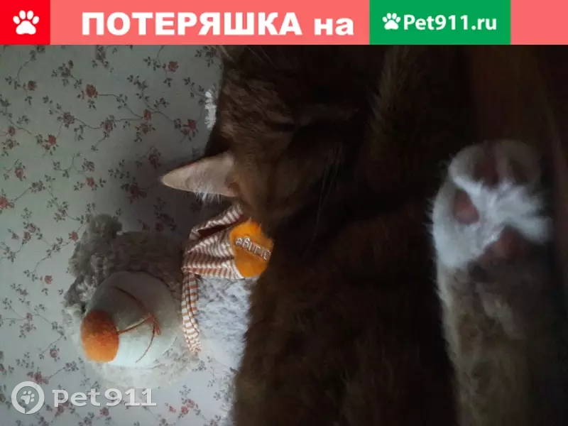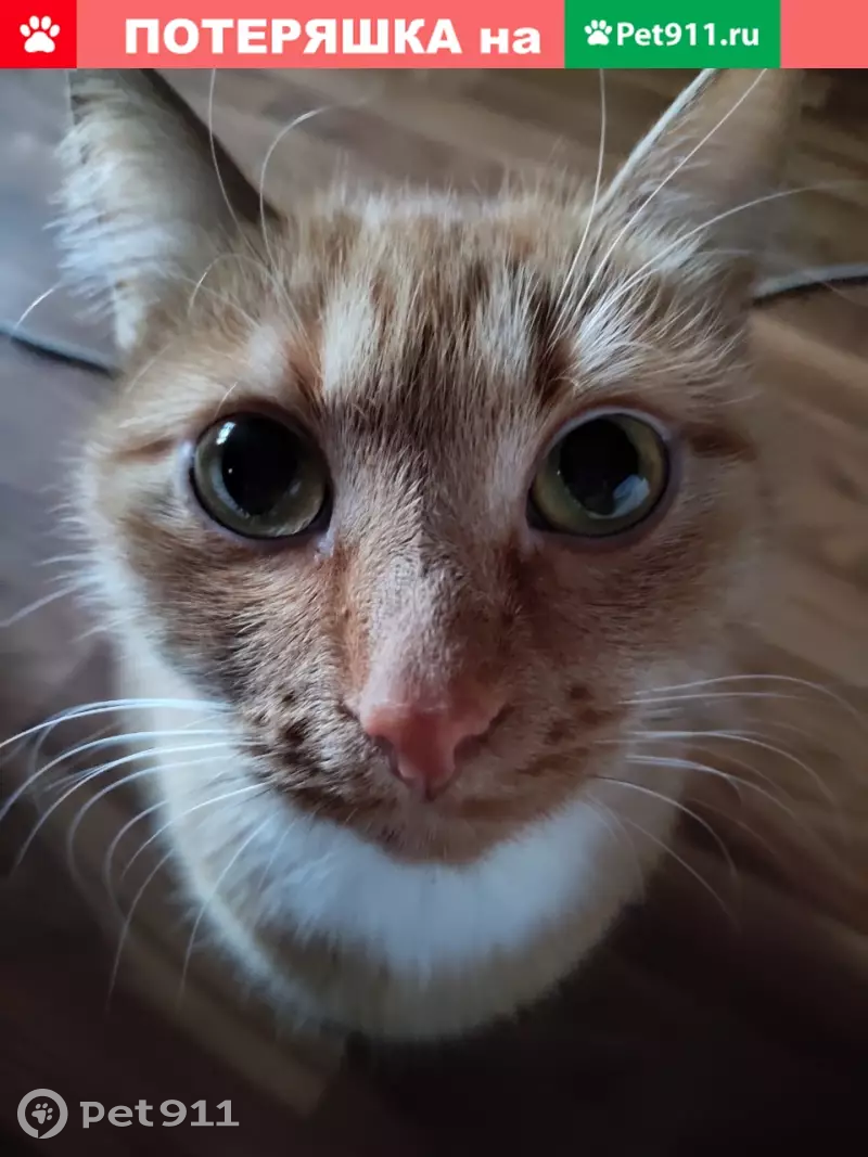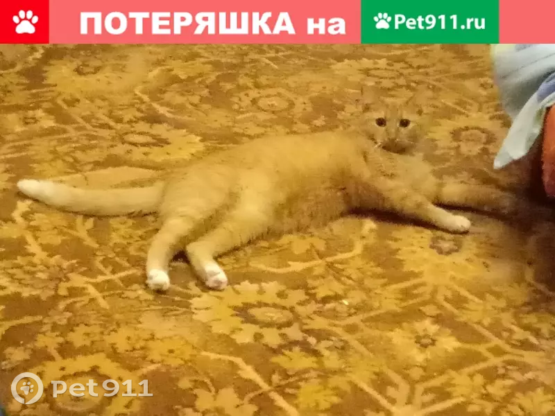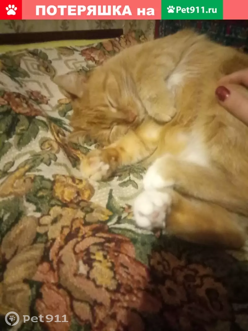 Пропал любимый питомец. Рыжая кошечка по имени Бубка,3 года. 20 октября выпала из форточки первого этажа. Окрас ярко-рыжий, только кончик хвоста и кончики лап беленькие, и еще есть белые пятна на животе небольшое и под подбородком, глаза желтовато-зеленые, глаза круглые как пуговки. Особые приметы: присутствуют несколько усов черного цвета, один клык обломан. Если кто-нибудь увидит или видели,или может быть кто-то нашел мою кошку,пожалуйста позвоните