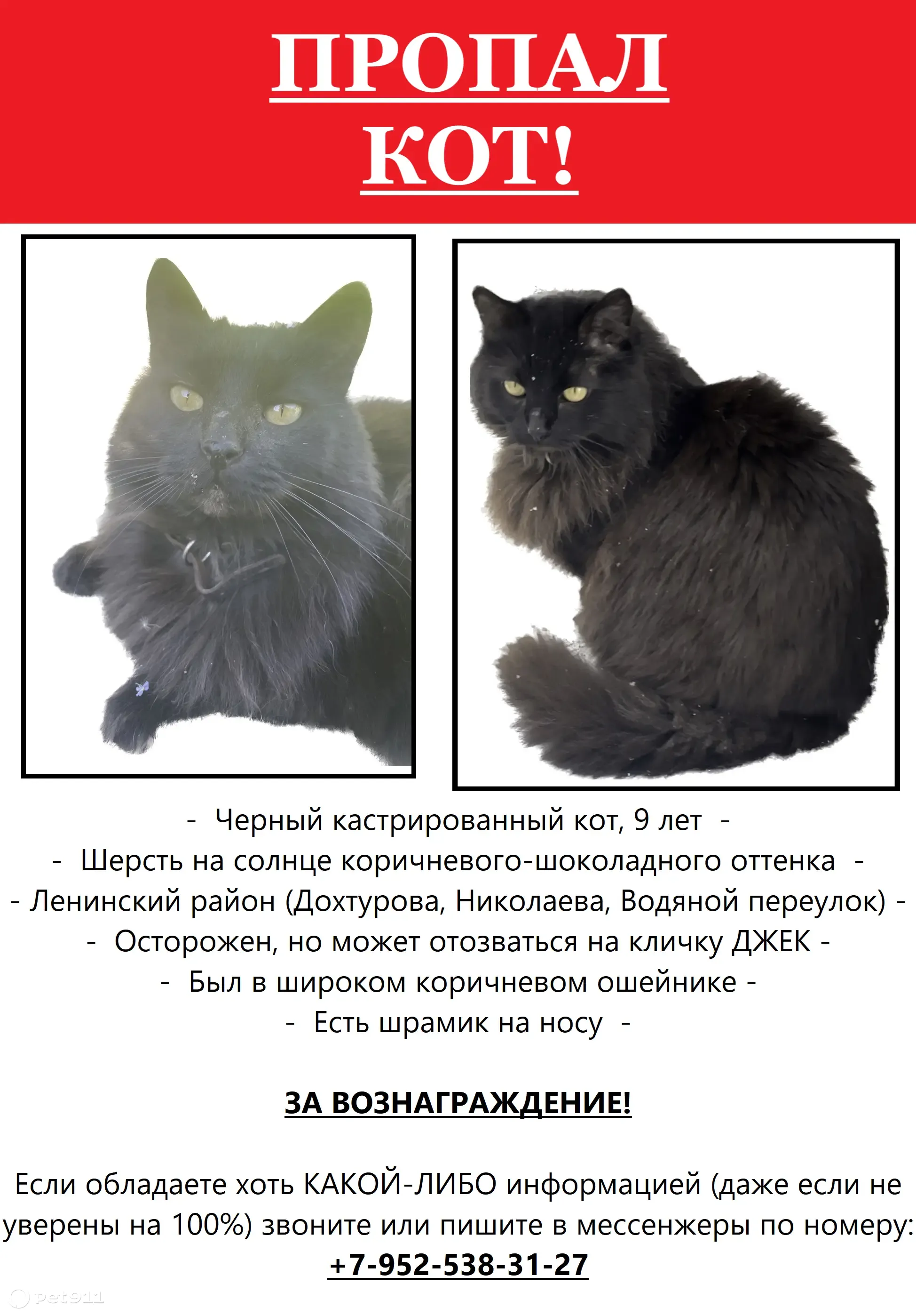 Потерянные животные Смоленск, фото: Пропал черный кот на ул. Дохтурова, Смоленск. Ошейник, шрамик на носу. Вознаграждение!
