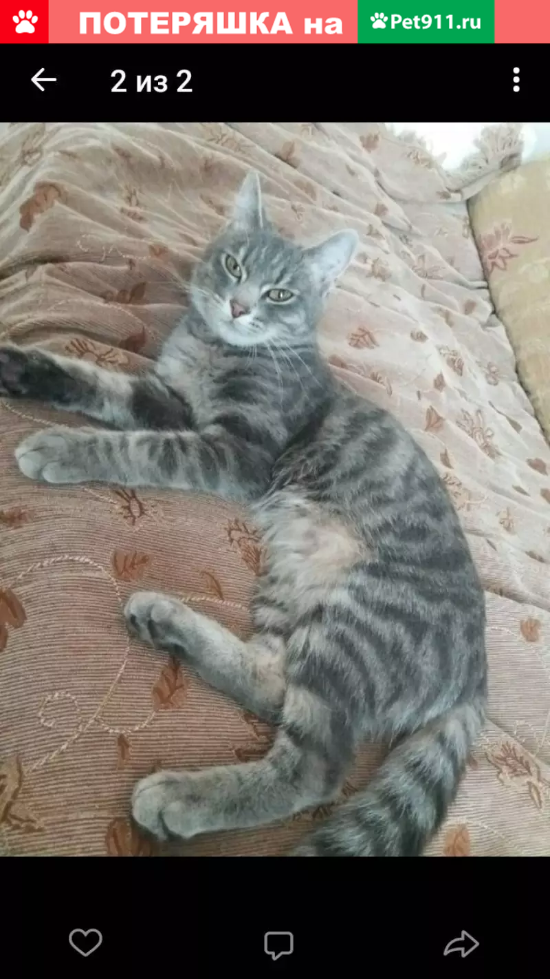 24. 05 пропал серый кот. По адресу П. Алексее...