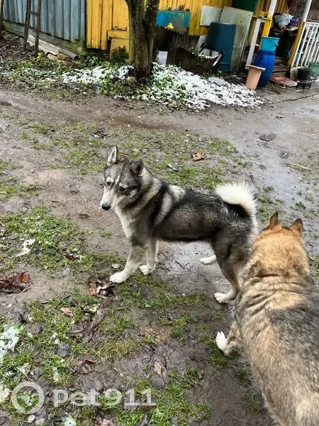 Собака молодая. Западно сибирская лайка. Есть след от ошейника. Прибилась к нашей деревне. Очень компанейская. Не уличная. Постоянно стремиться в дом