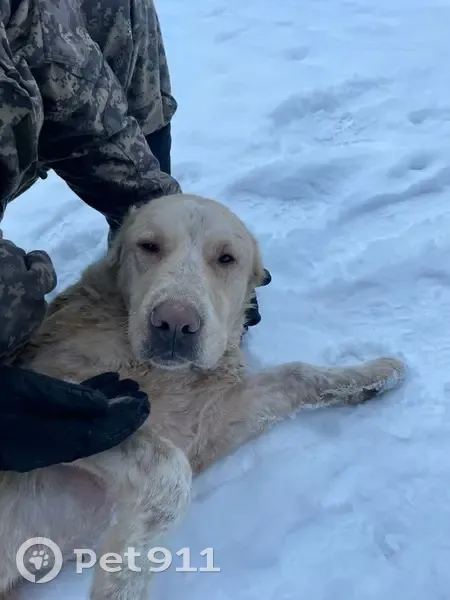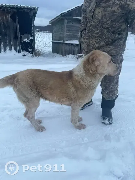 Найдена собака породы алабай, девочка, цвет бело-рыжий. Вышла к домам из леса, замученная, раненая и очень тощая, полагаю долго находилась на улице. Видно, что собака домашняя, совсем не агрессивная, к людям относится очень доверчиво и радостно. Ищем хозяев