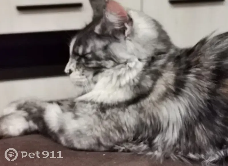 Кошка мейн кун, некрупная, трехцветная. Ушла гулять и не вернулась. Кошка домашняя, здесь была на даче. Может, вышла к кому?! Она очень приметная - белай нос, белое ухо. Очень ждем ее!!!