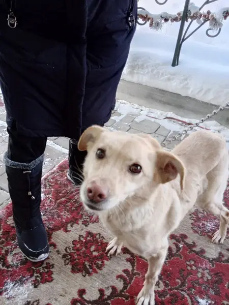 Маленькая светло-бежевая собачка. В шлейке и с серым поводком. Выбежала с участка крошечная собака Белла 4кг, возраст 1г. Недавно взята с улицы. Вывернулась и выскользнула под ворота только что, не догнали. Сбежала в ночь. Это 73 км Смолево, Казанское направление, снт Проектировщик