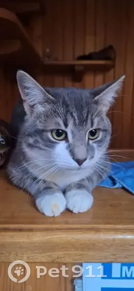 Серый кот с белыми ламками, грудкой и пузом, присутствует немного рыжего оттенка. Глаза каре-зеленые. Серый ошейник с подвеской в форме косточки (на лицевой стороне "Велес", на обороте номер телефона). Очень ласковый и игривый, чужаков сторонится. Вышел гулять 6 августа и не вернулся. Гулял каждый день, но вечером (или утром следующего дня) всегда приходил.