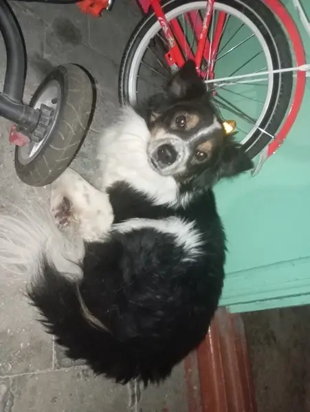Найдена собака, Флотская улица, Снежногорск - чёрная с белыми пятнами