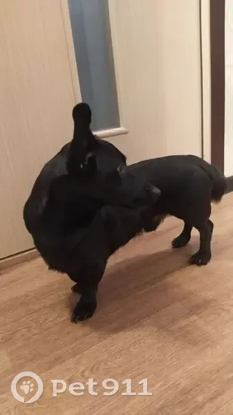 Кобель. Чёрный окрас, гладкошерстный, большие уши. Левое ухо не стоит. Высота в холке 27 см. Туловище вытянутые, лапы короткие. Подбегает ко всем машинам. Найден в городе Ярославль, в поселке Лесная поляна.
