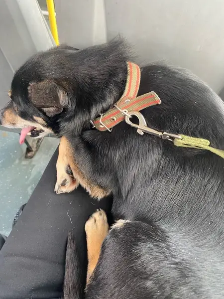 Порода неизвестна, есть ошейник, худой. Видимо, бродит давно