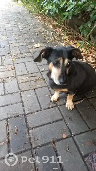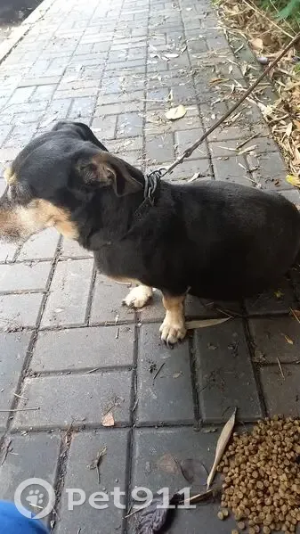 Окрас чёрный,такса, в стареньком ошейнике,поводок тоже старенький связан из нескольких верёвок,была привязанна к забору частного дома,сколько она там простояла неизвестно,была очень голодна и хотела пить я просто не прошла мимо,забрала напоила, накормила теперь хотелось бы найти ей приют или если получится хозяина.