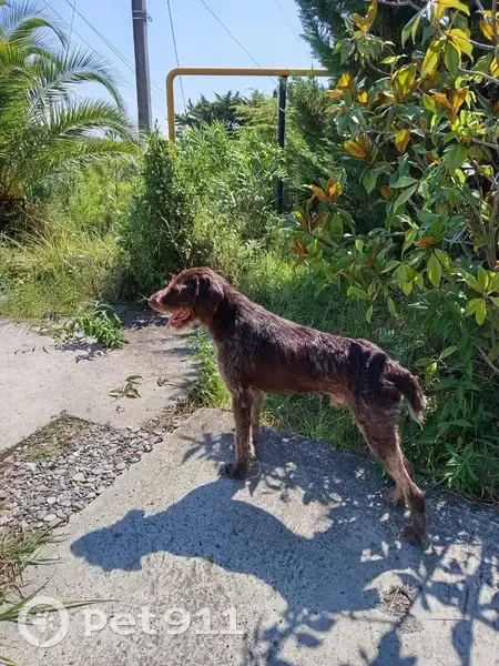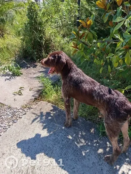 Щенок дратхаара, на вид больше полугода, но зубки еще молочные, коричневый и пятнышками серыми, хвостик купирован, но нет клейма и без ошейника. Нашли в пос.Детляжка, г.Сочи, в районе базы отдыха «Слава Черноморья»