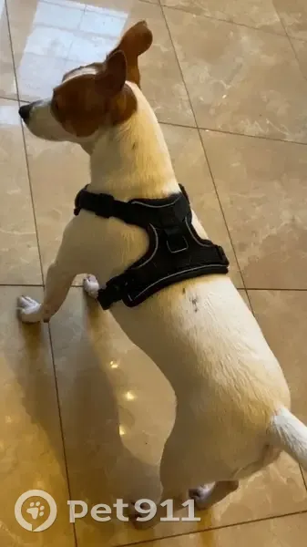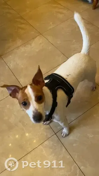 г. Сочи, Пластунская, район ГАИ Найден Джек-рассел-терьер (девочка),чуть не попала под машины. Скорей всего случайно убежала. Домашняя, в шлейке, послушная, есть клеймо. По клейму вышли на заводчика, но к сожалению, контактов хозяев нет. Собаку по паспорту зовут Еслина. Также на спинке у собаки 3 пятнышка есть. Контакты для связи: +79384710017