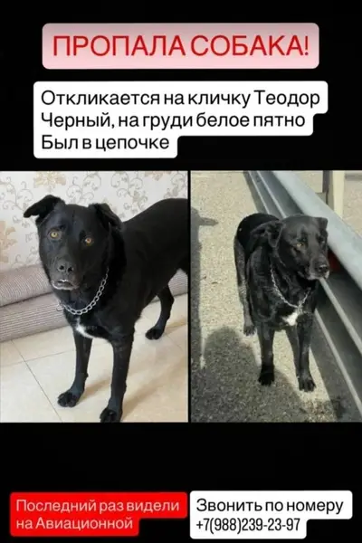 Найдена собака,девочка,без ошейника,ухоженная,окрас черный,с белой грудкой