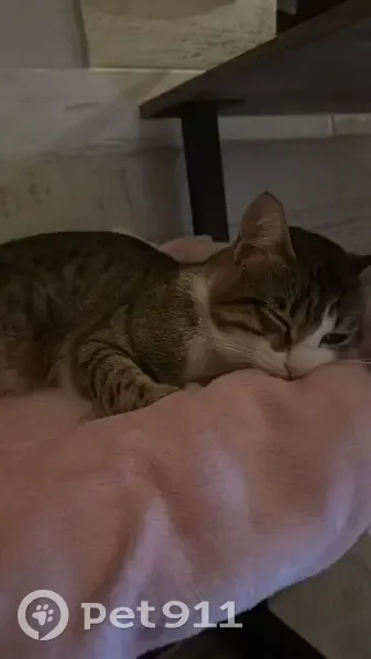 Полосатый кот, молодой, Симба. 1.5 года, только что кастрирован (18.10.25), На данный момент без ошейника, очень пугливый, боится людей и шума. Вышел как обычно гулять. Кот уличный, но всегда находился при офисе. Уходил всего два раза за последнее время Последний раз уходил на 5 дней. Сейчас его нет уже 4 дня..