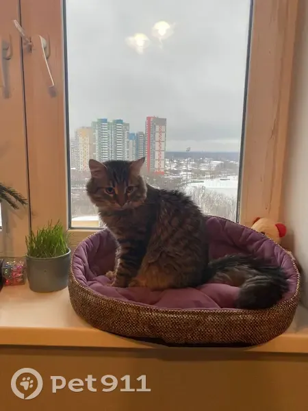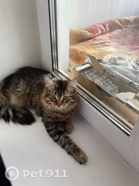 Пропал кот, окрас серый с коричневым, в полоску, кастрирован, недавно был подстрижен поэтому на кончике хвоста кисточка. Охотился за голубями продавил сетку и выбежал