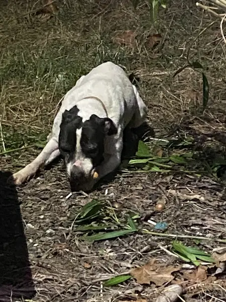 Пропал питбуль, окрас белый, вокруг правого глаза коричневое пятно, отзывается на кличку Брюс. Прошу помочь найти друга за вознаграждение!