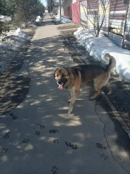 Метис овчарки,ошейник коричневого цвета.Ласковая и добрая.Девочка