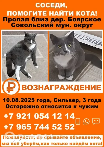 Объединено с объявлением rl1067925. Причина-дублирование информации. Описание дублирующего объявления: Потерялся мальчик Сильвер, шотландец прямоухий, 3 года, кастрирован. Потерялся после аварии