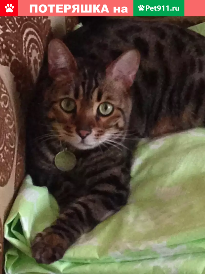 ПРОПАЛ КОТ!!! 01 августа ориентировочно в 15:00 в г. Солнечногорск-30, дом 14. Порода кота Бенгальский (коричневый в тёмно-коричневых пятнышках и полосках). На шее ошейник светло-коричневого цвета с медальоном серебряного цвета, на котором выбиты имя кота и номера телефонов. Убедительная просьба к жителям городка Солнечногорск-30, если увидите похожего кота, позвонить по телефону: Чтобы понимать хотя бы, где территориально искать кота. Друзья, проживающие в Солнечногорске-30, просьба сделать максимальный репост. Помогите найти домашнего любимца.