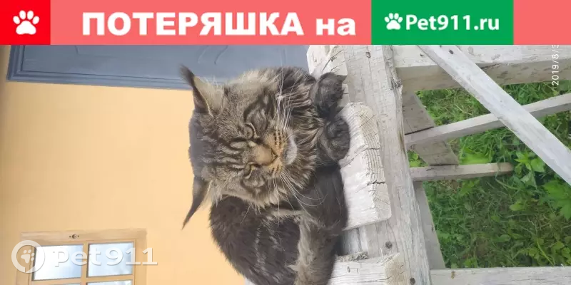 8 апреля днем убежал наш любимый кот пароды Мейн Кун , мальчик возраст 3 года, зовут Найс. Не агрессивный. Окрас черный мраморный, (лесной)