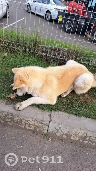 Рыжий с белым , кабель,похож на Акита ину, с сегодняшнего утра увидели на пороге работы, бегает то по территории то за ее пределами, видно что потерялся, возле работы свора собак, облаивают, пытаются покусать, не дают пройти ему… хозяин найдись пожалуйста!!!!! Семья с ребенком взяли к себе, если не найдется хозяин, оставят у себя