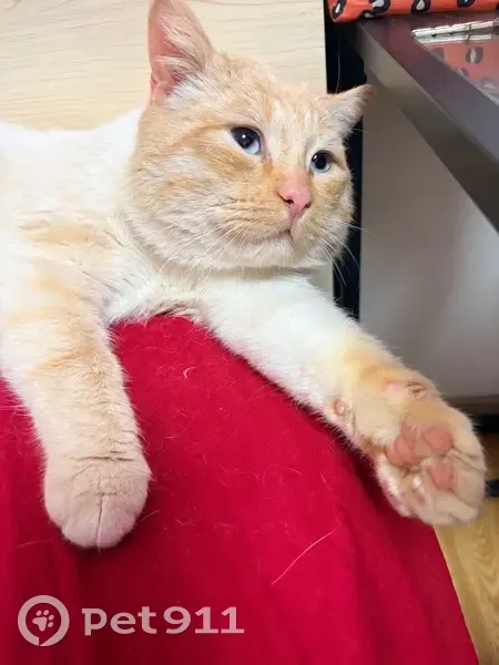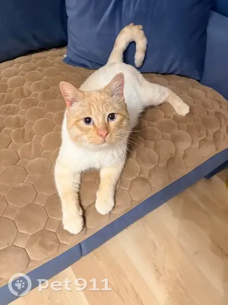 В д. Солосцово на конюшню пришел кот. Очень грязный, что странно зимой, но довольно упитанный. Взяли мы на передержку в свой дом, отмыли. Окрас оказался кремовым, мордочка и хвост рыжие, полосатые, глаза голубые, немного раскосые, носик розовый. Судя по зубам, кот молодой, от силы 2 года. По повадкам похоже, что домашний. Горшок знает, когтеточку тоже. С аппетитом проблем нет, ест все, даже печенье Очень контактный. Не пакостный. Посмотрела в интернете, похоже, что порода кота - тайский ред-поинт. Внешне один-в-один. Хозяева, отзовитесь! Кот классный! Наверняка переживаете.