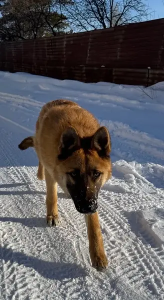 Возраст 7-8 месяцев. Кобель. Окрас рыжий, шерсь густая, мордочка черная. Собака небольшая. Хвост отсутствует. Есть ошейник цвет хаки. Выбежал со двора, погнался за собаками и с тех пор не вернулся.