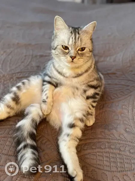 Домашняя кошка, на улице бывает крайне редко (только с нами), дома со своими ласковая, посторонних не очень любит, особенно если к ней «лезут», может быть агрессивной и напуганной. Особой приметой является редкий шерстяной покров на задней части спины. Окрас пепельный с темными пятнами и полосами, порода: британская. Кошка с характером, к чужим думаю не пойдет, будет прятаться и убегать 17.09 поздно вечером выбежала из гаража, отсутствовала всю ночь, ближайшие дома и кварталы обошли несколько раз, выбежать с участка могла только под забором с улицы Октябрьская, либо в проулок на Кооперативной