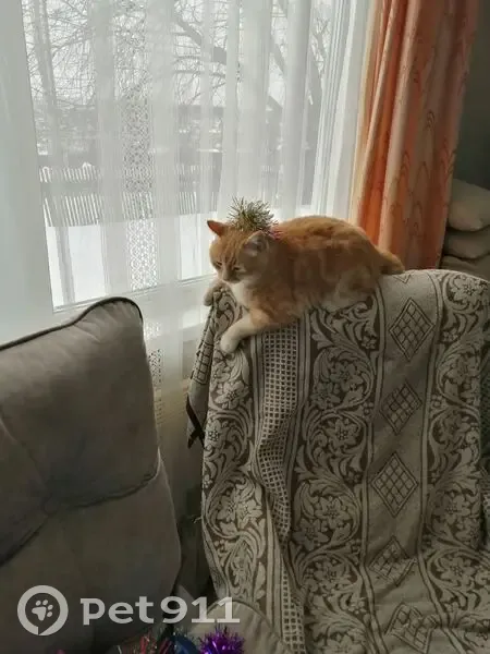 Рыжий окрас, платиновый, короткий хвост(порода бобтейл. Попросился ночью гулять, и пропал. Ночью пошла его звать (живём в частном доме), и увидела, что во двор заскочила свора бездомных собак. Персик, видно, испугался и убежал.