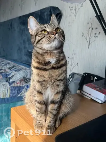 Серо-полосатая с неяркими рыжими пятнами на морде и спине. Белые пятна на подбородке, груди и животе. Хвост помпоном. Кошка после операции - выбрито пузо и небольшой участок на спине рядом с хвостом. Кошка ласкова и контактная. Ушла гулять и не вернулась.