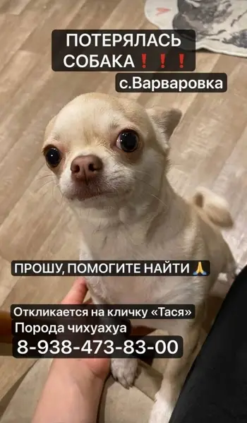 В станице Анапская,между улицей Николаевской и переулком Серебристый Найден кобелек белого окраса,с рыженькими ушками,маленького размера,похож на Чихуахуа.Очень ласковый,добрый, ухоженный, видно,что домашний.Вме время рвется искать свой дом.Не ест и не пьет, очень переживает.Хозяин отзовись пожалуйста.