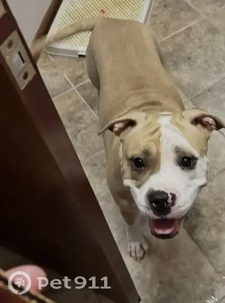 ️ Найден(а) собака Московская область, пос. Рыбхоз 20.02.2026 Найдена собака девочка (сука) Порода вроде Стаффоршидский терьер Окрас палево-белый С амуницией - серый ошейник широкий и поводок На брюхе есть Клеймо - прочитать не смогли Чип - Как будет возможность поищем Добрая, игривая, бегала по дороге в ошейнике с поводком. Придержали.
