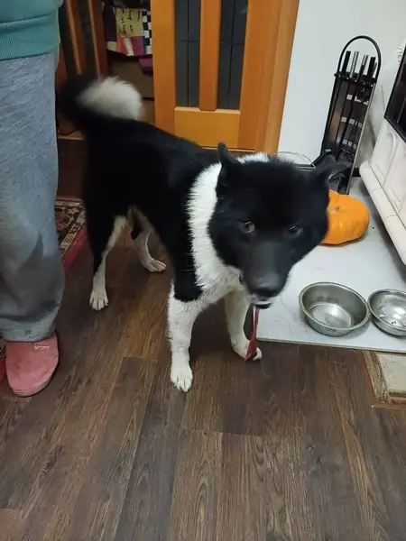 Район Электроугли, Купавна. Порода лайка. Окрас черно белый. 2 ошейника. 17 лет. Плохие зрение и слух.Кличка Панда, но на кличку может не откликаться.