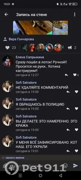 Кот похож на бенгала,но он просто помесь.Кончик хвоста отливает немного голубым цветом,а сам золотисто-коричневый.Хромает на заднюю левую ногу.Кот был намеренно вывезен с его территории,частный сектор (ласков,дается в руки)Елена Сапрыкина его и вывезла,как я понимаю!Она,написала пост,что кот ничей и она его оставляет себе,я отозвалась,сказала,что он наш,есть на всех сайтах объявление о нем!!!НО! Она удаляла мои ответы на сайте ,видимо,это админ этой группы!Написала,что так как хозяева,якобы,не нашлись,она его оставит себе и кастрирует!Представьте,что творят админы группы помощи животным!!Кот больной,у него врождённая травма!Кота не вернула!!!Меня заблокировала.Помогите вернуть животное домой!!!Указанный ею номер,якобы для того,чтобы обратились хозяева,левый,женщина ответила по данному номеру,что не знает никаких котов.