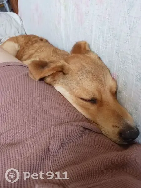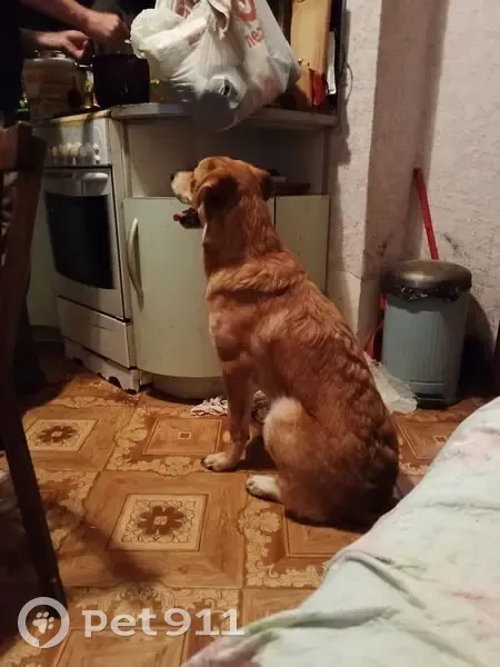 Среднего размера (похож на ретривера), рыжий окрас, хвост с черными прожилками пушистый, на конце белый. Ошейник черный, поводок-рулетка с синей ручкой. Убежал во время прогулки вместе с поводком