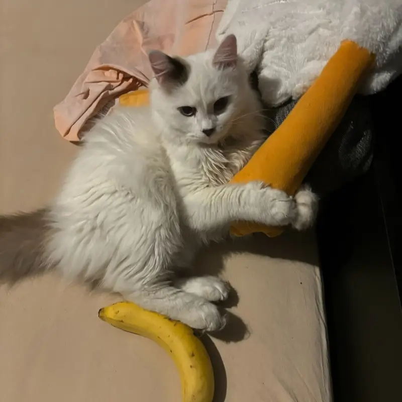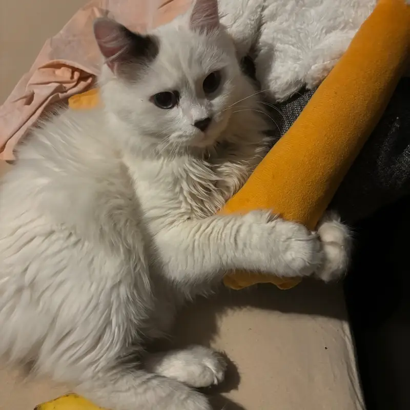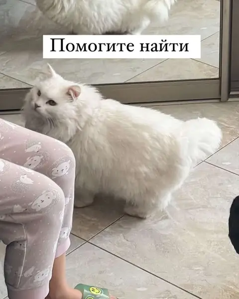 Белая, пушистая кошка. Порода предположительно турецкая Ангора. Примерно 2 года, может меньше, не большая. Найдена около краевой больницы. Рядом Сбербанк. Ленина 381