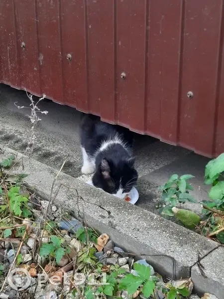 Черно белая кошечка, очень пугливая, подойти не даёт, поела только когда я отошла :( очень голодная была, явно домашняя, пугливая Мне кажется ее не ищут или вообще осознанно выкинули, вчера ещё ее видели и скидывали объявление, никто не откликается