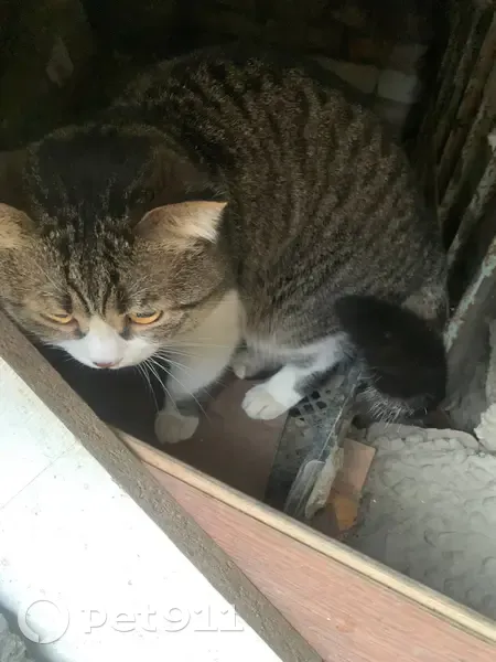 Сегодня увидела сидит в подвале, домашний, упитанный, мордастый… возможно кот, погладила, но с подвала не вышел, стрессует…пришел на еду…