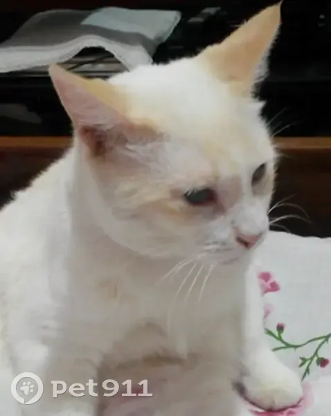 Белый с слабо выраженными оранжевыми разводами, почти невидимыми , довольно крупный кот. Пошёл ночью гулять по улице Шаумяна в сторону санатория и не вернулся.