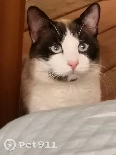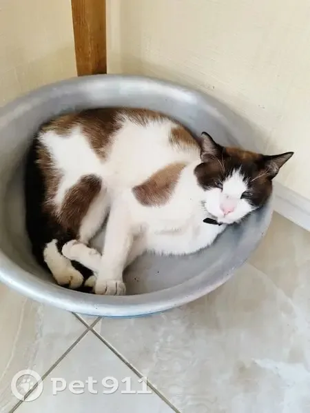 наполовину сиамец, отличительные черты - светло голубые глаза, длинный темно-коричневый хвостик, такого же цвета пятнышки на теле и беленькое пузико, на момент пропажи к сожалению не был надет ошейник, ласковый, людей не боится