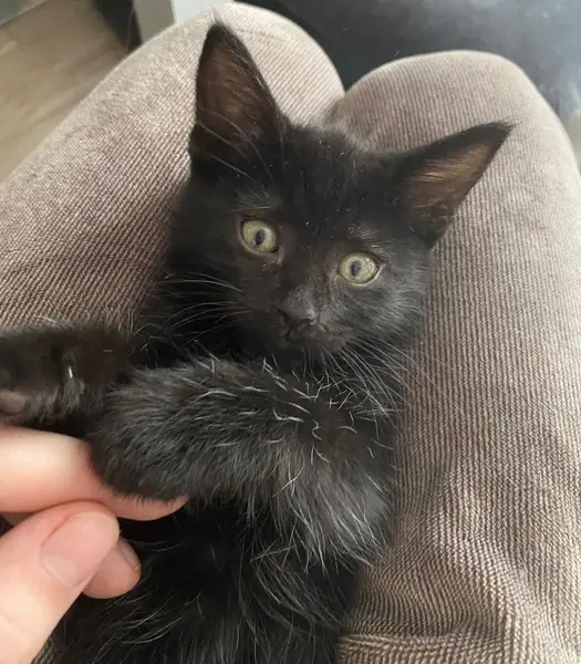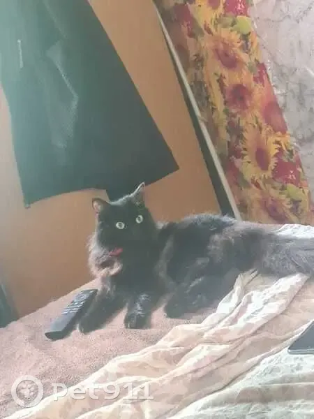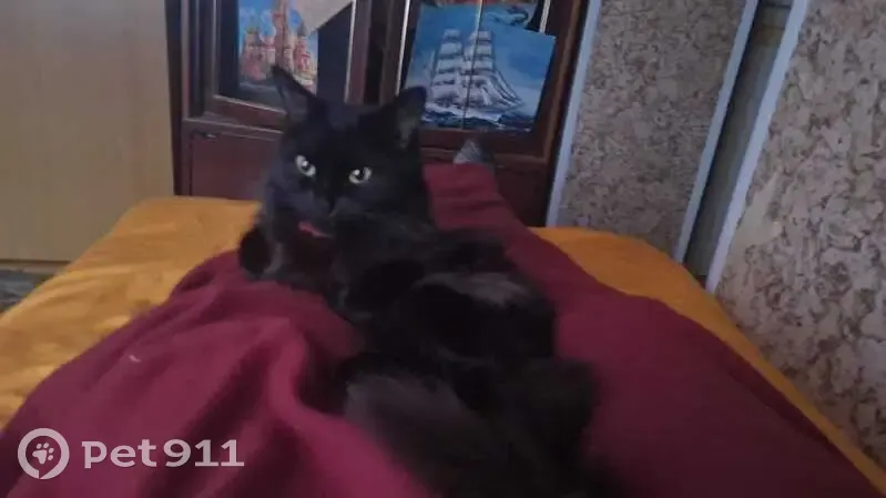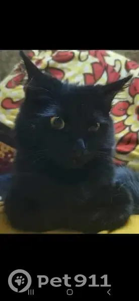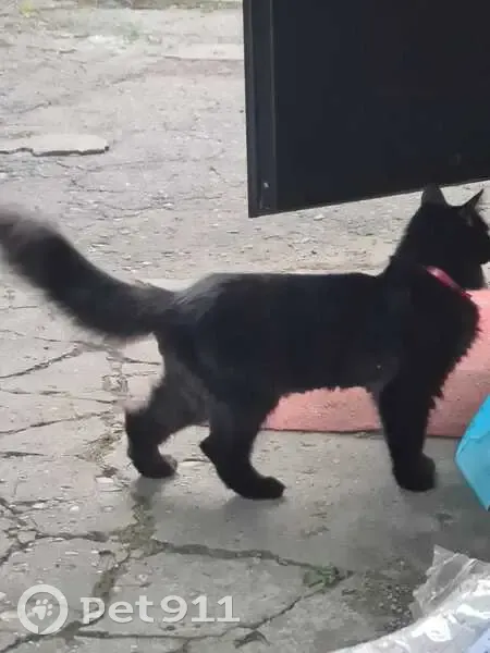 Кошка чёрная пушистая стерилизованная спокойная глаза жёлтые очень пушистый хвост с жёлтыми ошейником