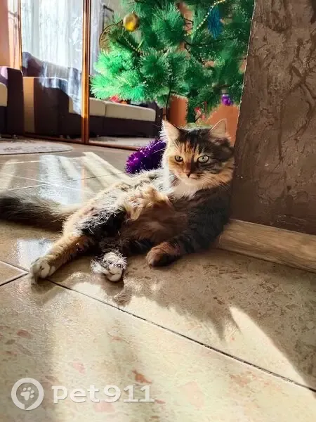 Домашняя пугливая кошка. Пестрая, трёхцветная, откликается на Бося или Боня. Длинная шерсть.