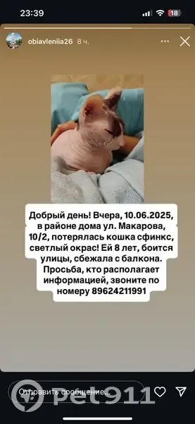 Кошка сфинкс, домашняя, боится улицы, требует...