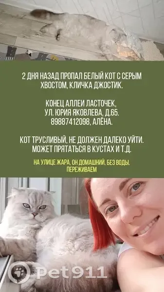 Потерянные животные Ставрополь, фото: Пропала кошка, Октябрьская 186/2, Ставрополь