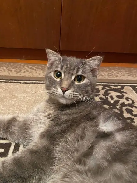 Выглядит на золотистую шиншиллу, оранжевый. Я шёл по улице где находится магазин Русские Фейерверки, котик ко мне начал бежать и мяукать, у него синий ошейник, глаза жёлтые - большие, хвост не очень короткий примерно средний