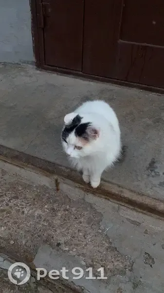 На Деповской появилась кошечка, с ошейником, чистая, очень мерзнет., плачет, голодная, просится в подъезд, правое ухо меньше левого, что то с глазом, может кто то ударил.