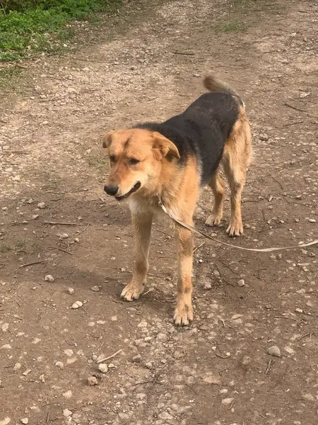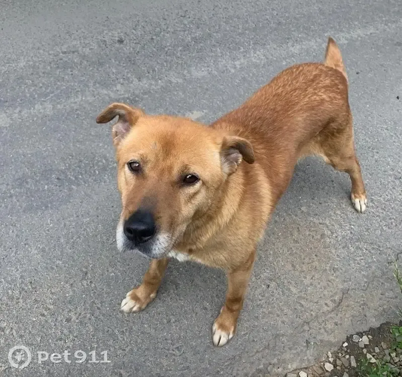 Рыжая сука, метис, относительно молодая, ласковая, бегает по деревне (Страдань, ТиНАО) уже несколько дней (с 8 июня) и просит приюта, ластится, без ошейника, но явно домашняя.