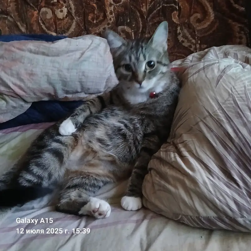 Найден котенок, мальчик, возраст примерно 2-4 месяца. Был домашний, очень ласковый. Знает все правила поведения котов в доме. Задняя левая лапка, наверное, была раньше сломана или вывихнута. Если кто-то интересуется его судьбой - мы нашли его, отчаянно цепляющегося за жизнь, худого и замерзающего на улице, и взяли его домой. Он сам подошел и попросил спасти его. Мы его не выбросим, будем ухаживать, растить, любить. Назвали Стасиком -)).