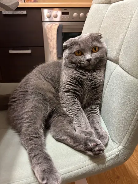Серого окраса, зеленые глаза, розовые подушечки