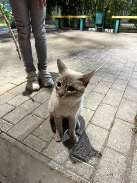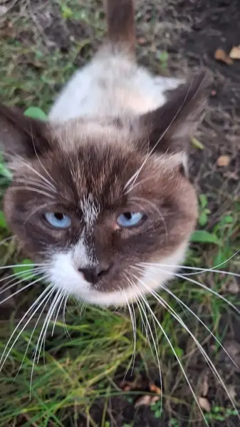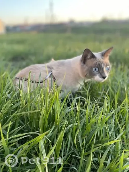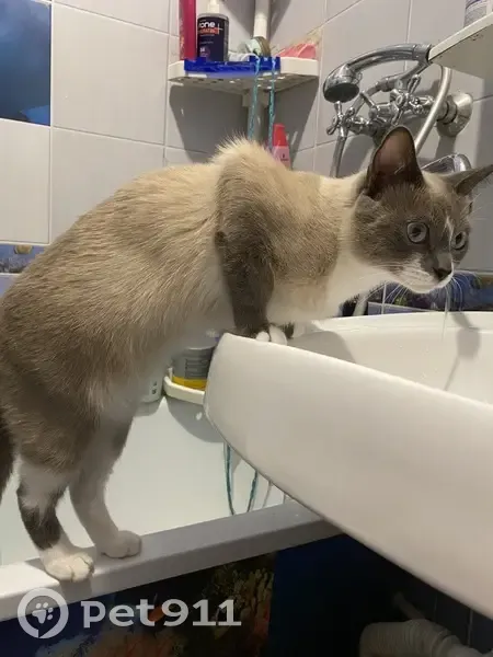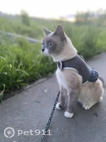Особые приметы: светлое тело, тёмные лапы и хвост, белая мордочка, большие голубые глаза. Без ошейника. Откликается на кличку «Шейк». Характер: домашний, дружелюбный, может подойти к людям, может прыгнуть в машину, любит кататься.
