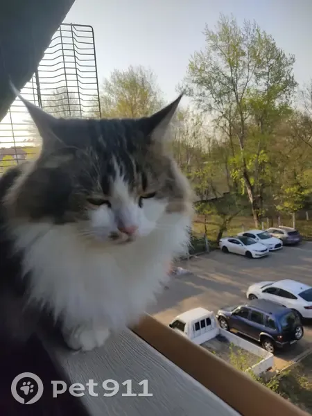 Пушистый кот .Цвет шерсти белый с серо-коричневым.Осоьые приметы мушка на мордочке с правой стороны.Кот домашний и ни когда по улице не гулял.Сын был дома и поэтому мы не знаем как он пропал.Мы уходили утром на работу он был дома ,пришли уже нет.Скорее всего ребенок не досмотрел и он через дверь убежал.