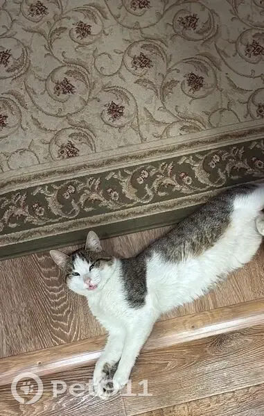 Кот 1,5 года , не стерилизован . Короткошёрстный белая мордочка ,грудка животик ,головка . Спинка ,хвост серокоричневый в крапинку, хвост короткий хвост короткий сантиметров 7-8 , порода домашняя крещена с бобтейлом , от туда и своеобразный хвостик. В руки не даётся . Ворчун . Утром вывели в туалет на улицу (он ходит только так ) , после туалета гуляет немного , после прогулки не вернулся .У соседей видели до обеда потом пропал